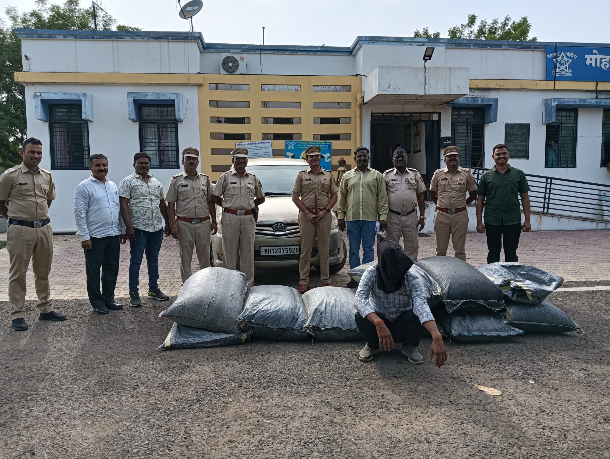 दिनांक 29रोजी मोहाडी नगर पोलीस ठाणे येथील पोहेकों सचिन वसंत वाघ, चेतन राजेंद्र झोळेकर व वाहन चालक मंगल धर्मदास पवार अशांना मोहाडी पोलीस ठाणे अंतर्गत रात्रगस्त डयुटी नेमण्यांत आलेली असतांना दिनांक 30रोजीचे पहाटे 05.00 वा. सुमारांस मुंबई आग्रा राष्ट्रीय महामार्ग क्र.3 वर लळींग गावाजवळील इंडीयन ऑईल पेट्रोलपंजाजवळ एक संशयीत गोल्डन कलरची इंनोव्हा वाहन हि धुळे कडून मालेगांव कडे जात असतांना सदर वाहन चालकांस वाहन थांबवण्याचा इशारा केला असता सदर कार चालक याने वाहन न थांबविता एम.एच. 18 ढाब्यापासून यु टर्न मारुन परत धुळयाच्या दिशेने पळून जाण्याचा प्रयत्न केला. पोलीस अंमलदार यांनी सदर कारचा पाठलाग करून इंडियन ऑईल पेट्रोलपंपाजवळील सव्हीस रोडवर कार थांबविली. परंतु त्यातील चालक हा कारच्या चावीसह अंधाराचा फायदा घेवून लळींग गावाच्या दिशेने पळून गेला. सदर कारचालकाचा पाठलाग करून त्यांस लळींग गावाचे पुढे लळींग घाटात पकडून त्याचे नांव गांव विचारता त्याने त्याचे नांव ।) रमेश भवराराम बिष्णोई, वय-33 वर्षे, रा. हेमनगर, जोलीअली, ता.जि. जोधपुर, राज्य राजस्थान असे सांगून व त्याचे सोबत असलेल्या त्याचा पळून गेलेला साथीदार त्याचे नांव गांव विचारले असता त्याने त्याचे नांव 2) महेश साहू, रा. खोखरीया, ता.जि. जोधपुर, राज्य राजस्थान असे सांगितले. वाहन चालक याचे ताब्यात वरील नमुद वाहनात राखाडी काळपट रंगाच्या पिवळया पट्टया असलेल्या 10 प्लॅस्टीकच्या गोणीत 181.306 किलोग्रॅम वजनाचा वाहनासह रक्कम रुपये 24,07,530/- किंमतीचा अफुच्या झाडांचे फुटलेल्या फळाचे सुकलेली टरफल्यांचा चुरा उम्र वास येत असलेली मानवी मेंदुवर विपरीत परिणाम घडवुन आणणारा मादक पदार्थ विक्री करण्याचे उददेशाने स्वतःचे आर्थीक फायदयाकरीता कब्जात बाळगुन तिची चोरटी वाहतुक करीत असतांना तसेच वाहनांवर व वाहनात बनावट नंबर प्लेट बाळगतांना मिळून आल्याने तो कायदेशीर कारवाई करून जप्त करण्यांत येवून वर नमुद वाहन चालक व त्याचा पळून गेलेला साथीदार यांचे विरुध्द गुंगीकारक औषधी द्रव्ये आणि मनोव्यापारावर परिणाम करणारे पदार्थ अधिनियम 1985 चे कलम 8 (क). 17 (क) सह भारतीय न्याय संहिता कलम 318 (4) प्रमाणे फिर्याद पोहेकों / 39 सचिन वसंत वाघ यांनी दिले वरून मोहाडी नगर पोलीस ठाणे येथे गुन्हा रजिस्टरी दाखल करण्यांत आला आहे.